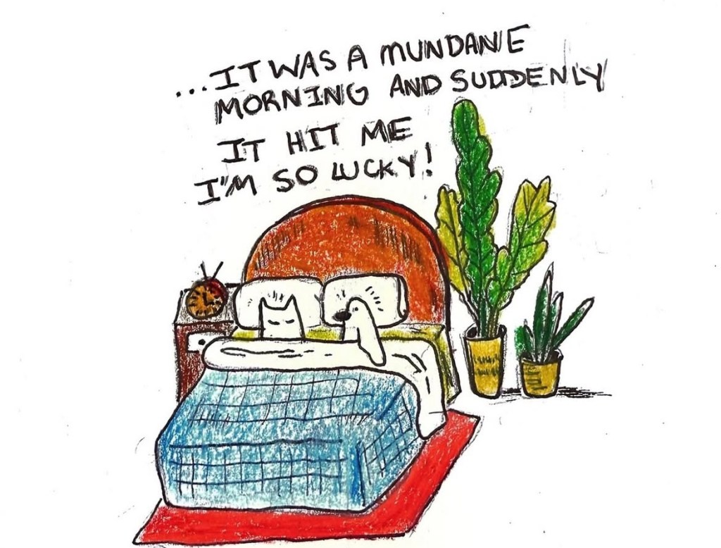 Today, I woke up with a clear mind and felt grateful. I did my morning stretches, ending with meditation. I sat outside with my cat listening to the birds. The sun was hidden, and the humidity was mild. I felt present. I felt lucky. I went to the gym and took my time. I made a yummy meal and set myself up for the week ahead. Slow mornings make me feel like I am living.